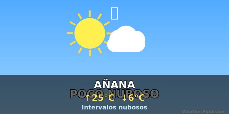 El próximo 23 de abril, los vecinos de Añana podrán disfrutar de un día caracterizado por intervalos nubosos, donde el sol jugará al escondite con las nubes. Con temperaturas que oscilarán entre los 6°C por la mañana y alcanzando agradables 25°C por la tarde, este sábado promete ser ideal para salir y disfrutar de lo que la bella naturaleza de nuestro entorno tiene para ofrecer.