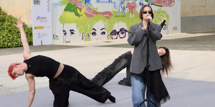 La entrada de las piscinas de Mendizorrotza se convirtió, este jueves, en un espacio de artes plásticas, música y danza, en el marco de una iniciativa organizada por las oficinas del futuro. Este proyecto busca coordinar e integrar todas las estrategias para construir el futuro de la ciudad en torno a la Agenda Urbana 2030.