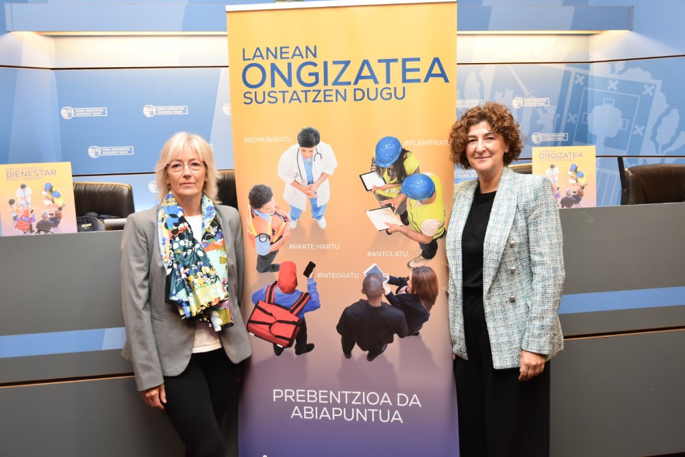 El lema de la campaña, «Promovemos el bienestar laboral«, ha sido presentado por Elena Pérez Barredo, viceconsejera de Trabajo y Seguridad Social, y Lourdes Íscar Reina, directora general de Osalan. El bienestar físico, mental y social son ejes fundamentales en la prevención de riesgos laborales y también tienen una gran importancia en el futuro del trabajo.